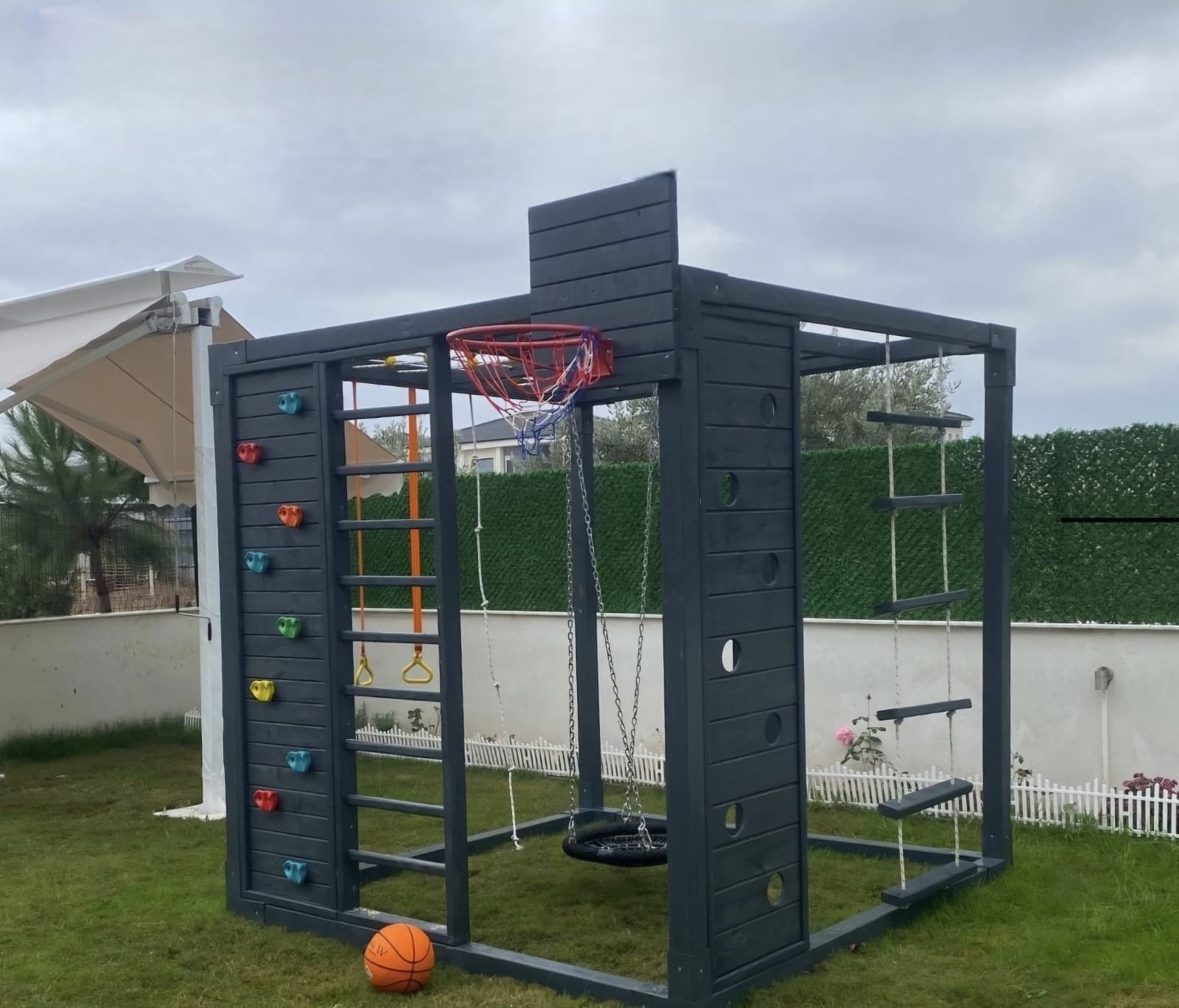 tire swing, rock climbing wall and monkey bar, everything your kids need in one premium
